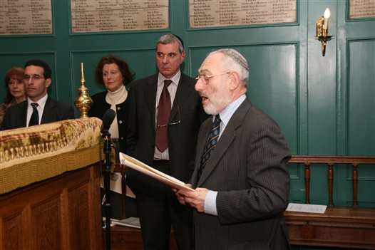 De heer Rosenberg, hazan, zingt ter afsluiting van de plechtigheid