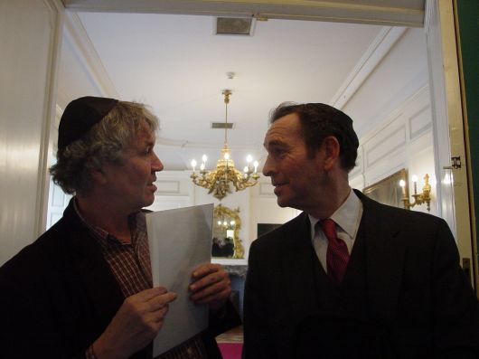 Roelof en Gerbrand Kotting nemen in de Snoge de medaille en het certificaat in ontvangst, die postuum aan hun vader is toegekend.