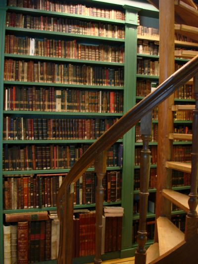 De bibliotheek bevat de meest prachtige ingebonden werken. Bezoek op afspraak mogelijk.