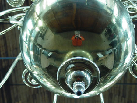 Een indrukwekkende hangende kroonluchter met een groot aantal kaarsen.
