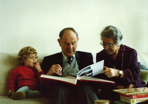 Grootouders Elsa en Paul, kijken foto's met kleindochter Berthe Verdonck