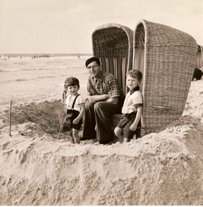 Het strand Jaap en Ulli (R) en Maarten (L)