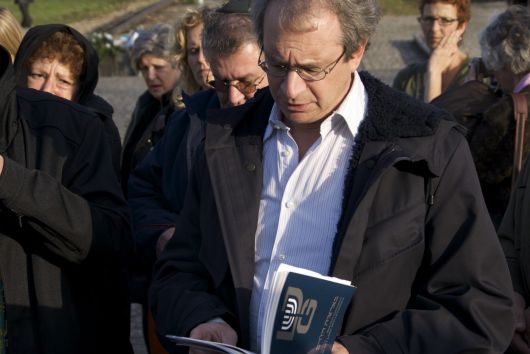 Menno ten Brink, rabbijn, leidt de herdenkings ceremonie in Auschwitz-Birkenau.